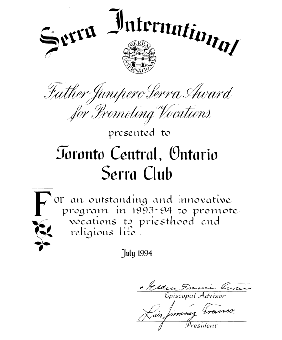 List of Presidents of Toronto Central Serra Club